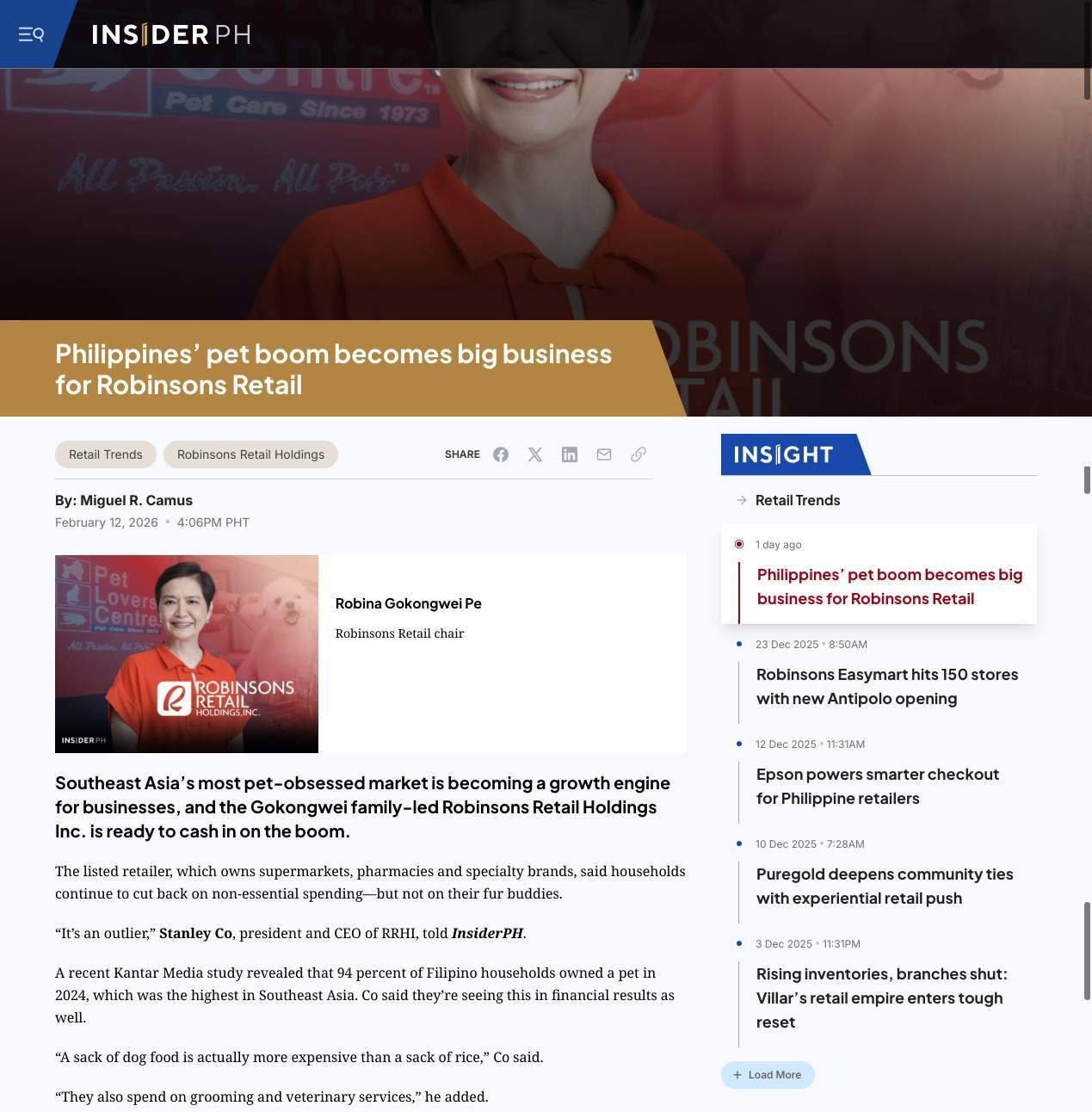 Full article here: Philippines’ Pet Boom Becomes Big Business for Robinsons Retail