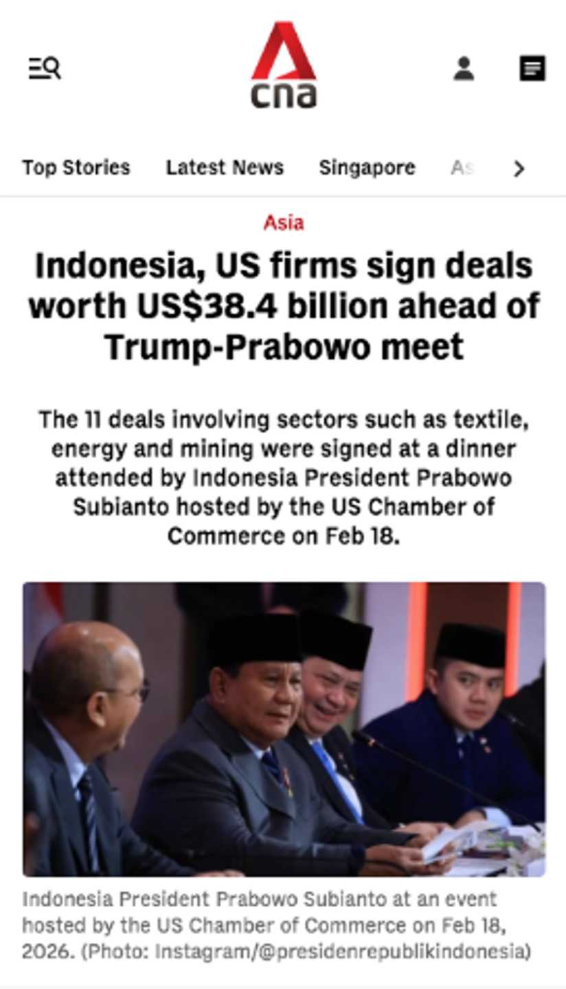 Full article here: Indonesia’s president reaches a trade deal with US while in Washington for Trump’s Board of Peace
