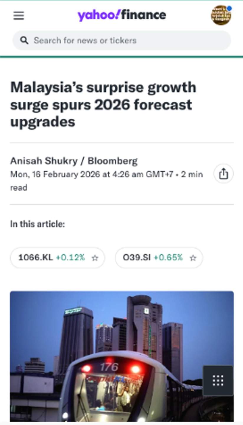 Full article here: Malaysia’s surprise growth surge spurs 2026 forecast upgrades
