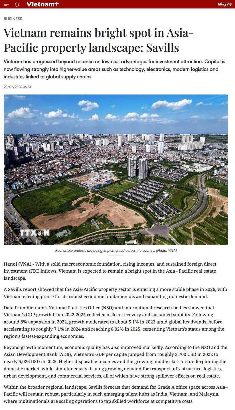 Editor’s View: Savills calling Vietnam a bright spot is grounded in data. GDP growth hit 8.02% in 2025 after 7.1% in 2024. GDP per capita jumped from $3,700 in 2022 to nearly $5,026 in 2025. FDI approached $38-40 billion with disbursed capital at a record peak. “China Plus One” is producing tangible industrial land demand, Grade A office absorption and logistics infrastructure needs. European investment targets high-value segments: technology, electronics, advanced processing. The North-South Expressway and Long Thanh Airport are creating new growth corridors. Vietnam has moved beyond low-cost labour. Capital is targeting supply chain integration.