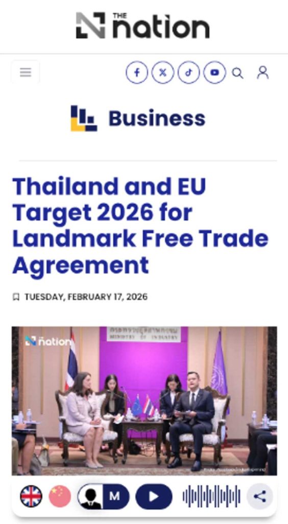 Editor’s View: Industry Minister Thanakorn hosting EU Ambassador Luisa Ragher to confirm Thailand is on track for mid-2026 FTA conclusion despite caretaker status is the right message at the right time. The EU is Thailand’s third-largest ASEAN trading partner. The alignment between Thailand’s BCG model and EU green transition is genuine. The three-pronged strategy – EV supply chain decarbonisation, CBAM and waste regulation alignment and leveraging the EU’s €300 billion Global Gateway for S-Curve investment – is well constructed. If concluded on schedule, it would demonstrate Thailand can execute through political transition. That matters more than content.